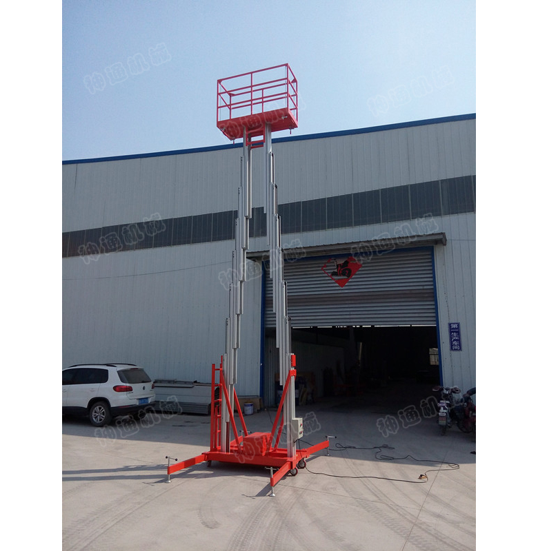 產(chǎn)品介紹:鋁合金式液壓升降平臺(tái)采用高強(qiáng)度優(yōu)質(zhì)鋁合金材料,具有造型美觀、體積小、重量輕、運(yùn)轉(zhuǎn)靈活,推行方便。升降平穩(wěn)、安全可靠等優(yōu)點(diǎn)。雙柱鋁合金式升降機(jī)能穿越一般門廳,可隨意進(jìn)出電梯,能在極小的空間內(nèi)發(fā)揮最高的舉升能力。使雙人高空作業(yè)變得輕而易舉。且耗電少、無(wú)污染、工作時(shí)不傷地面,可用于貼墻作業(yè)及探出作業(yè)。鋁合金升降平臺(tái)分為單柱、雙柱、三柱和四柱等.